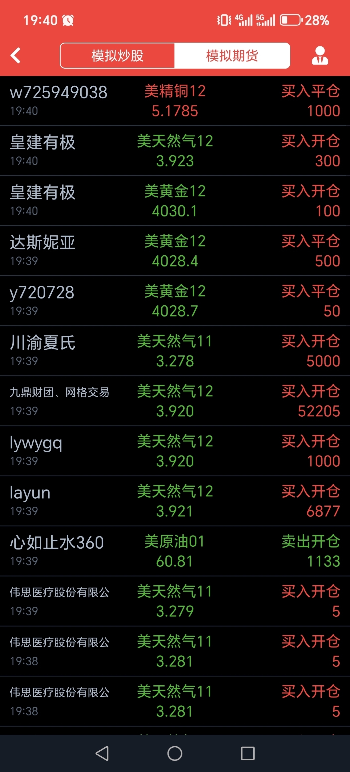 模拟期货持仓